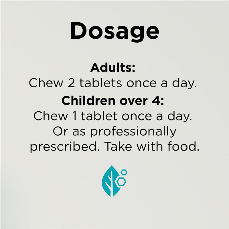 Children 4-17 years – For immune health: Chew (do not swallow whole) 1 tablet once a day, or as professionally prescribed. Take with food.