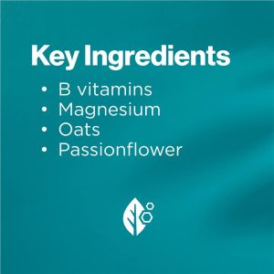 Active Ingredients: Thiamine hydrochloride (thiamine vitamin B1 66.9mg) 75 mg, Riboflavin (vitamin B2) 10 mg, Nicotinamide 100 mg, Calcium panthothenate (pantothenic acid 68.8 mg) 75 mg, Pyridoxine hydrochloride (pyrdioxine 20.6 mg) 25 mg, Cyanocobalamin (vitamin B12) 30 micrograms, Biotin (vitamin H) 20 micrograms, Calcium ascorbate dihydrate 145.5 mg, Ascorbic acid 130 mg (total vitamin C 250 mg), D-alpha tocopheryl acid succinate (vitamin E 50 IU) 41.3 mg, Magnesium phosphate pentahydrate (magnesium 28.9 mg) 140 mg, Calcium phosphate (calcium 37 mg) 95.6 mg, Monobasic potassium phosphate (potassium 33.7 mg) 117 mg, Folic acid 150 micrograms, Avena sativa (oats) ext. dry conc. 25 mg (equiv. to dry seed 250 mg), Passiflora incarnata (passion flower) extract dry conc. 20 mg (equiv. to dry herb 100 mg), Choline bitartate 25 g, Inositol 25 mg.