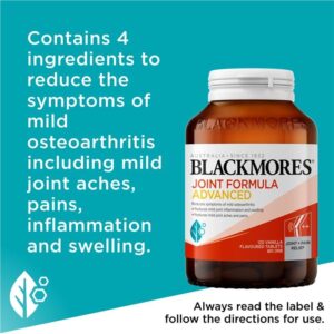 Blackmores Joint Formula Advanced is formulated to reduce symptoms of mild osteoarthritis including mild joint inflammation, swelling, mild joint aches and pains.