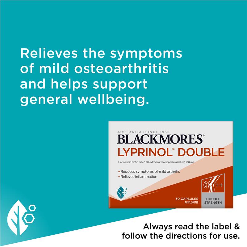 Need relief from the symptoms of mild osteoarthritis and inflammation? Experience the anti-inflammatory benefits of Blackmores Lyprinol® Double capsules and support your general wellbeing.