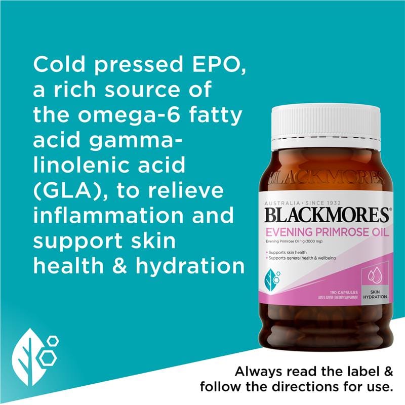 Blackmores Evening Primrose Oil is a natural source of omega 3 which can help to support skin health and hydration.