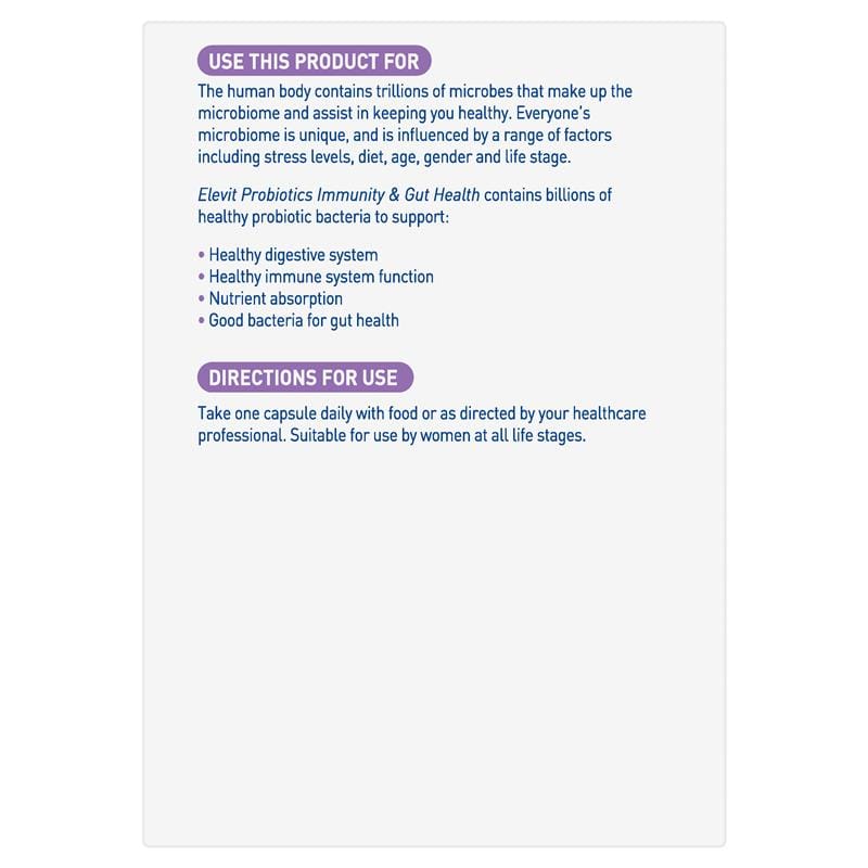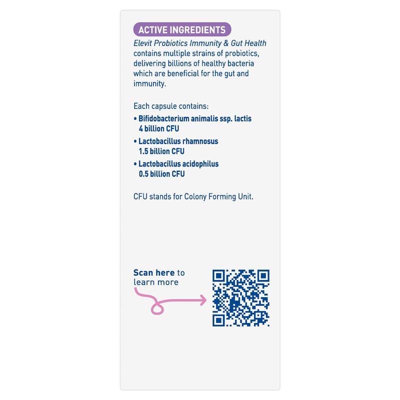 Elevit Probiotics contains billions of healthy probiotic bacteria and has been scientifically formulated to support immune system health, gut health, intestinal flora growth and nutrient uptake.