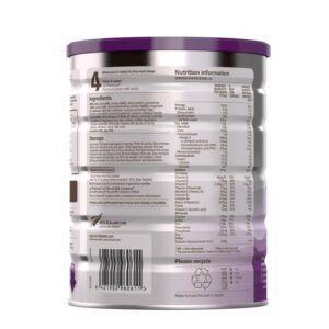 Milk solids [skim milk, lactose (milk), whey protein concentrate (milk), whole milk, demineralised whey powder (milk)], vegetable oil [soybean, high oleic sunflower, coconut, emulsifier (soy lecithin), antioxidant (mixed tocopherol)], galacto-oligosaccharide [GOS] (milk), dried omega-3 oil [fish oil (tuna)], minerals [calcium, phosphorus, magnesium, iron, zinc, iodine], acidity regulators (calcium hydroxide, citric acid), vitamins [(A, B6, B12, C, D, E), thiamin, riboflavin, niacin, folic acid]. Contains: Contains milk, soy, fish