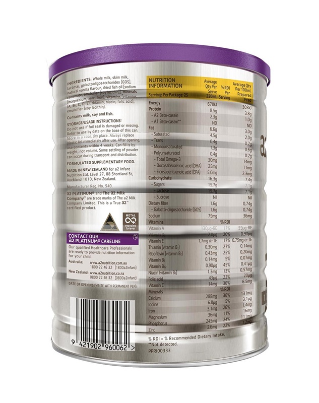 Hàm lượng dinh dưỡng trong sữa: Sữa bột A2 Platinum số 4 cho bé từ 3 tuổi 900g