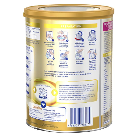 • Sự kết hợp của các thành phần chính, chất lượng cao trong Nestlé NAN Supreme 3 cung cấp cho con bạn các vitamin và khoáng chất thiết yếu, như sắt và vitamin D để hỗ trợ sự tăng trưởng và phát triển bình thường.