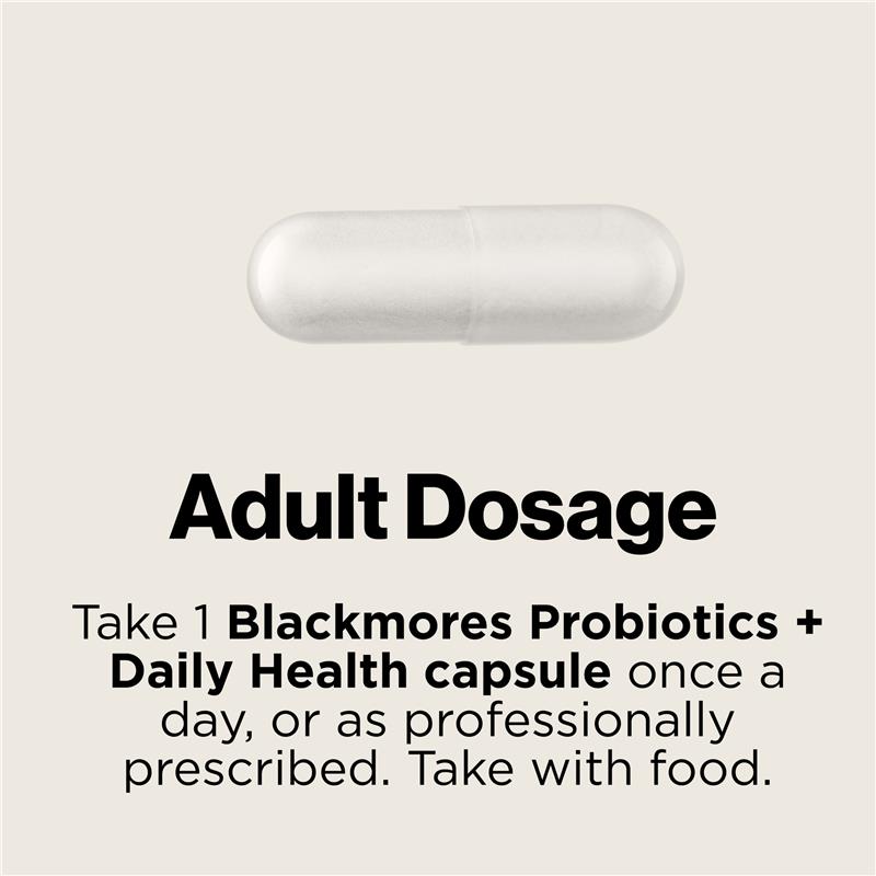 Blackmores Probiotic+ Daily Health is formulated based on scientific evidence. This dual-action formula contains five probiotic strains providing 30 billion good bacteria, plus a prebiotic. It helps restore friendly gut flora and maintain intestinal health. There’s no need to refrigerate a specialised formulation process and packaging technology helps prevent moisture from harming the good bacteria, helping keep them alive.