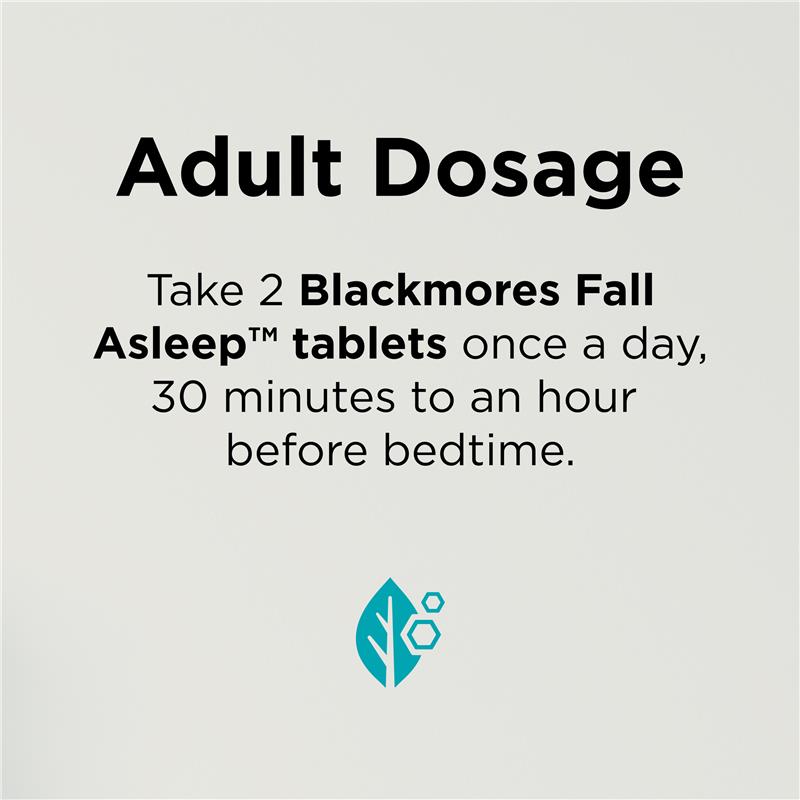 Blackmores Fall Asleep is specially formulated with minerals and botanicals lavender, lemon balm, ziziphus and magnesium to help relax the mind, and help you fall asleep. Adults take 2 tablets once a day 30 minutes before bed time. Suitable For: Adults