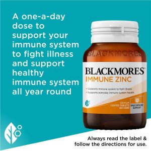 Blackmores Immune Zinc aids in the maintenance of good health and wellbeing as zinc is found in every cell of the body. Adequate levels of zinc are essential in the functioning of the immune system. It is also important in wound healing and the maintenance of healthy skin.