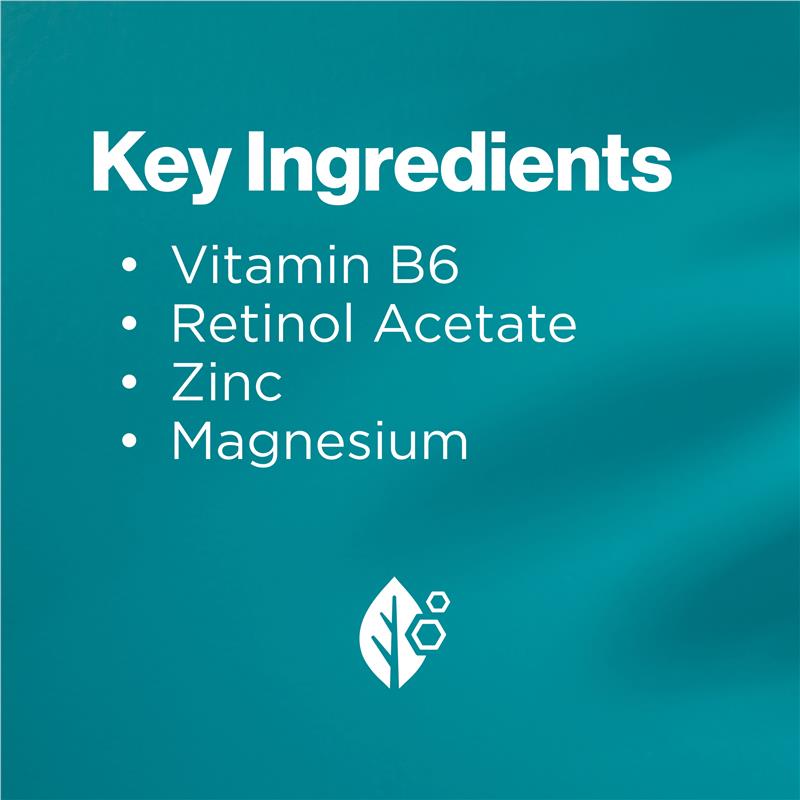 WARNING – Stop taking this medication if you experience tingling, burning or numbness and see your healthcare practitioner as soon as possible. (Contains vitamin B6). The recommended daily amount of Vitamin A from all sources is 700 micrograms retinol equivalents for women and 900 micrograms retinol equivalents for men. If symptoms persist talk to your healthcare professional.